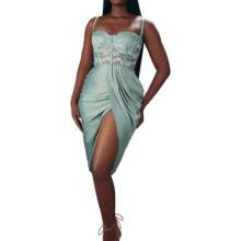 Fun, Feminine, and Effortlessly sexy. The ALBA Dress is cut from soft chantilly lace and is draped to accentuate your curves.